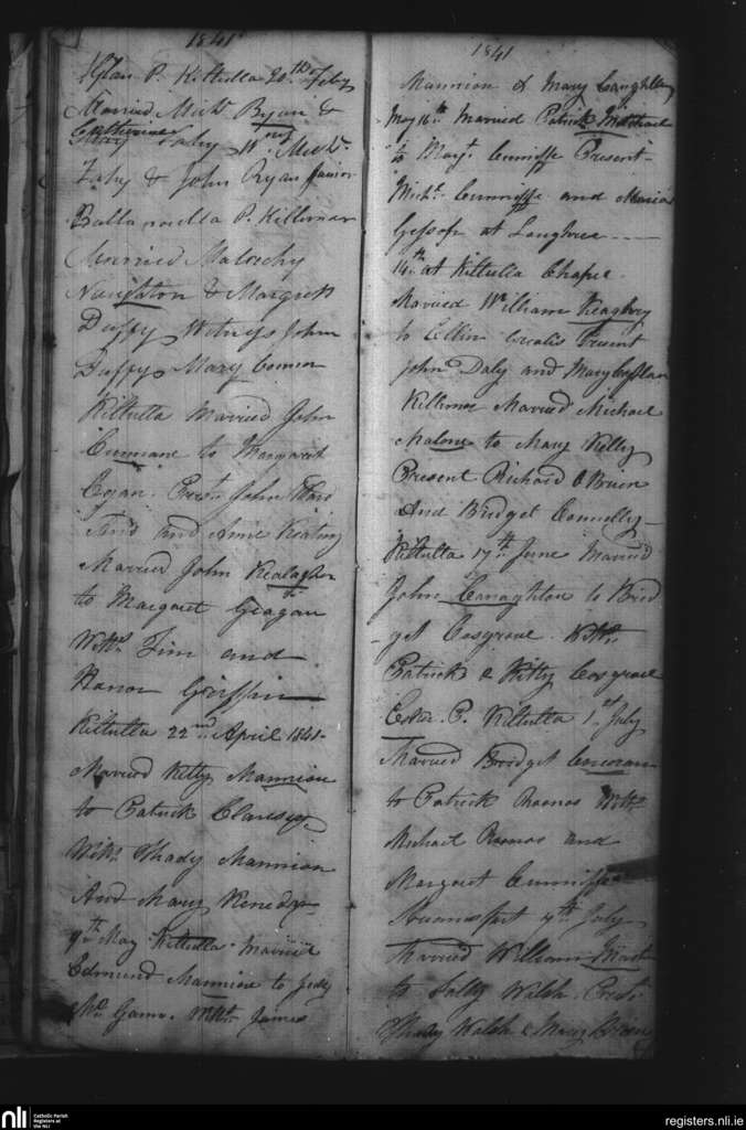 Kiltullagh; County of Galway; Diocese of Clonfert. Marriages, Feb. 1841 to July 1841