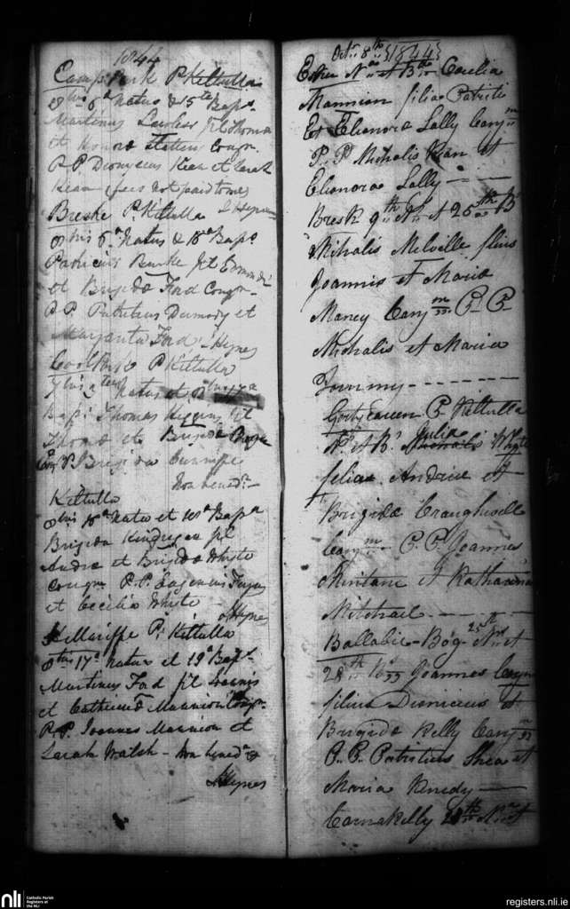 Kiltullagh; County of Galway; Diocese of Clonfert. Baptisms, Sep. 1844 to Oct. 1844