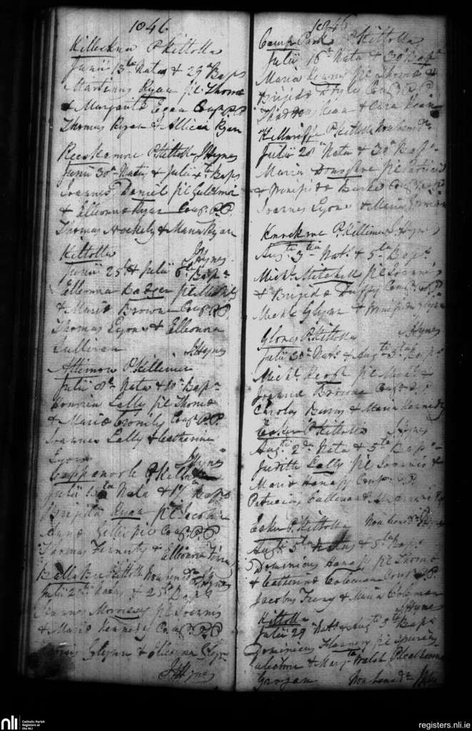 Kiltullagh; County of Galway; Diocese of Clonfert. Baptisms, June 1846 to Aug. 1846