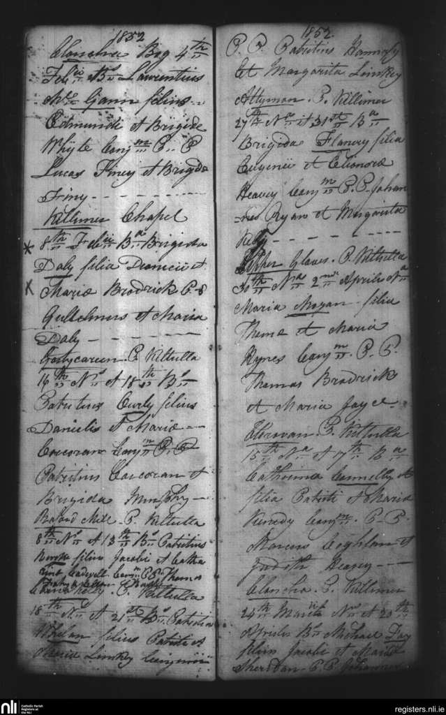 Kiltullagh; County of Galway; Diocese of Clonfert. Baptisms, Feb. 1852 to Apr. 1852