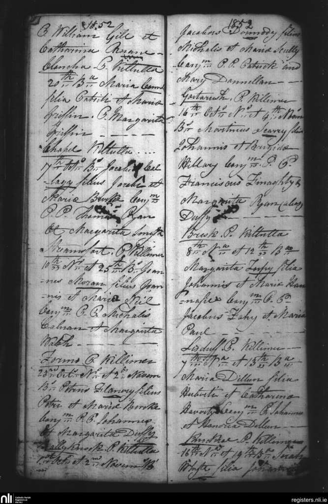 Kiltullagh; County of Galway; Diocese of Clonfert. Baptisms, Sep. 1852 to Nov. 1852