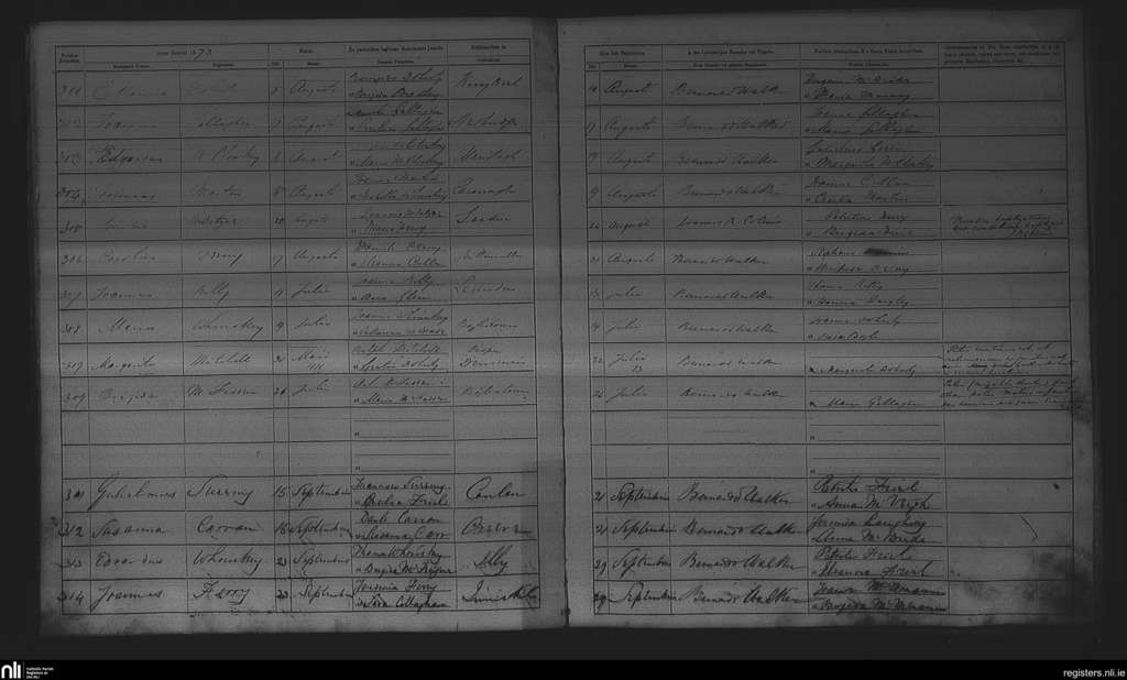 Killygarvan; County of Donegal; Diocese of Raphoe. Baptisms, July 1873 to Sep. 1873