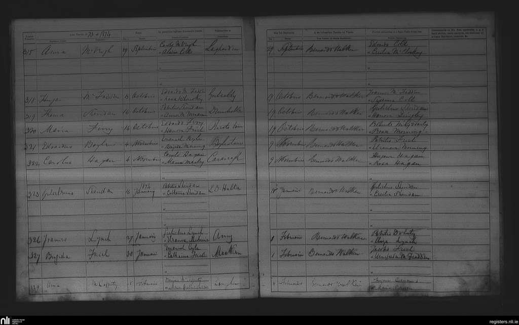 Killygarvan; County of Donegal; Diocese of Raphoe. Baptisms, Sep. 1873 to Feb. 1874