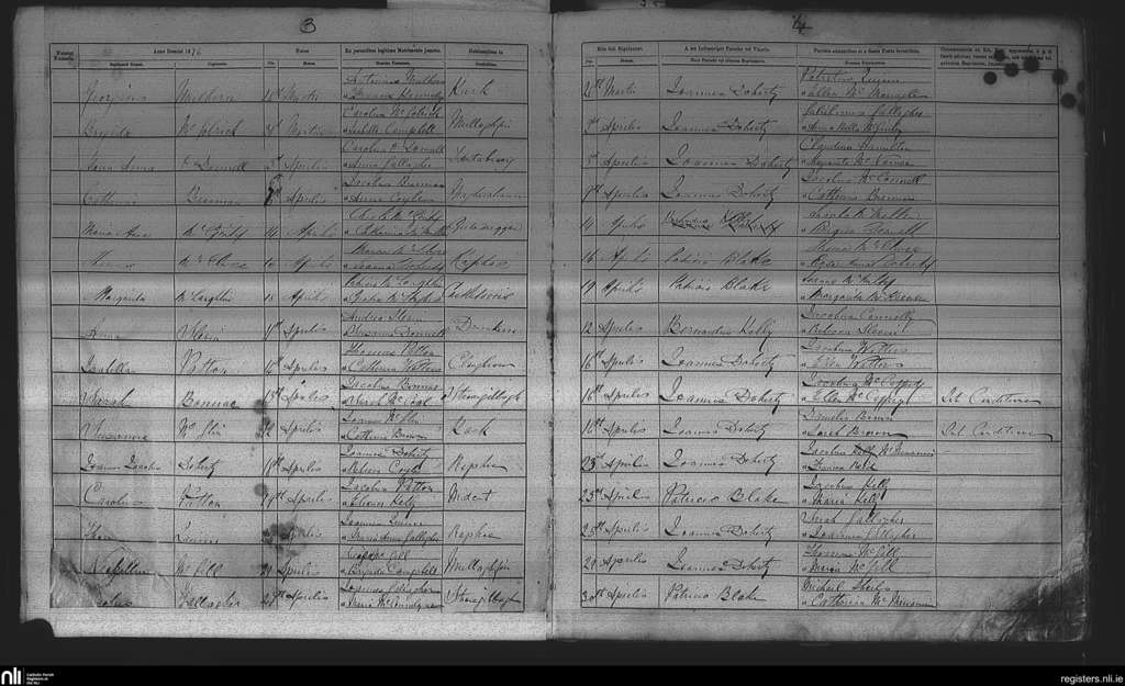 Raphoe; County of Donegal; Diocese of Raphoe. Baptisms, Mar. 1876 to Apr. 1876