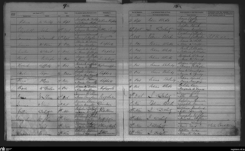 Raphoe; County of Donegal; Diocese of Raphoe. Baptisms, Sep. 1876 to Nov. 1876