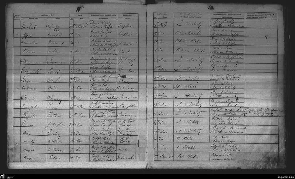 Raphoe; County of Donegal; Diocese of Raphoe. Baptisms, Nov. 1876 to Jan. 1877