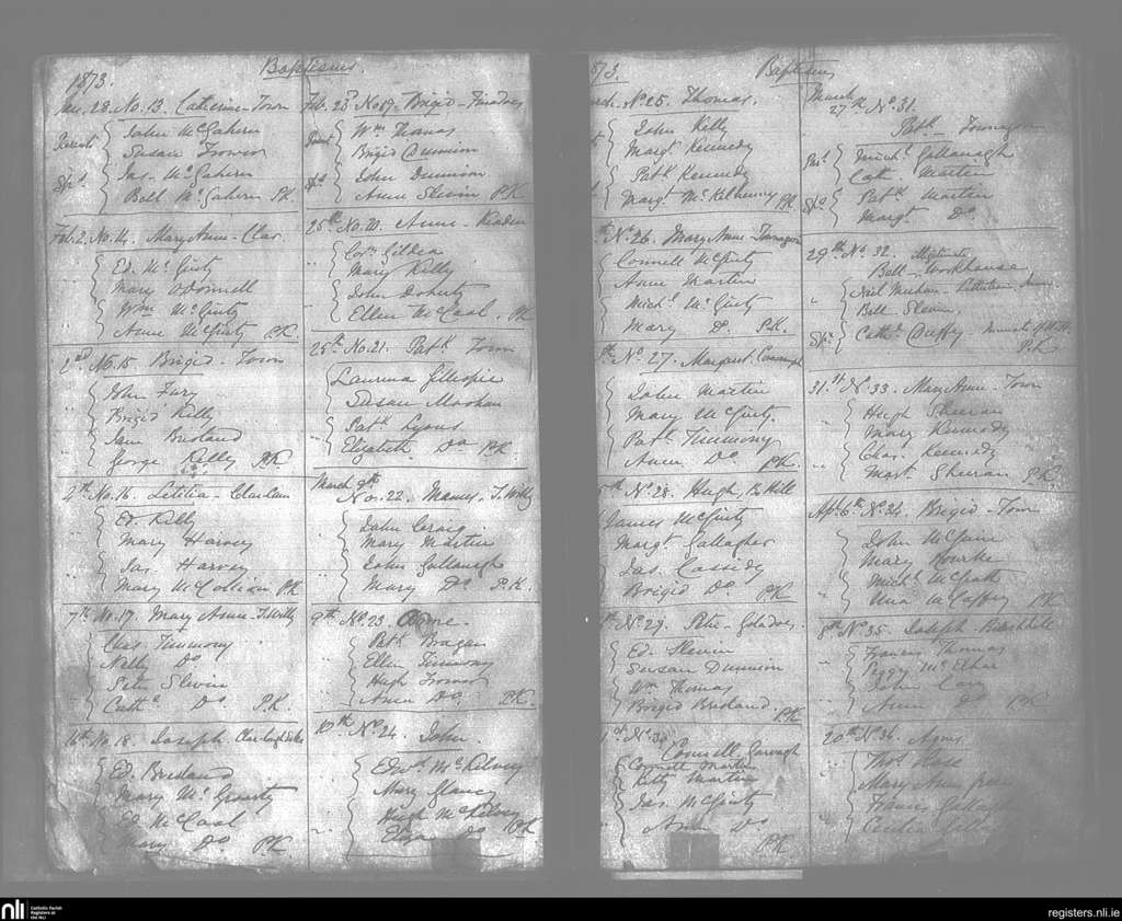 Tawnawilly; County of Donegal; Diocese of Raphoe. Baptisms, Jan. 1873 to Apr. 1873