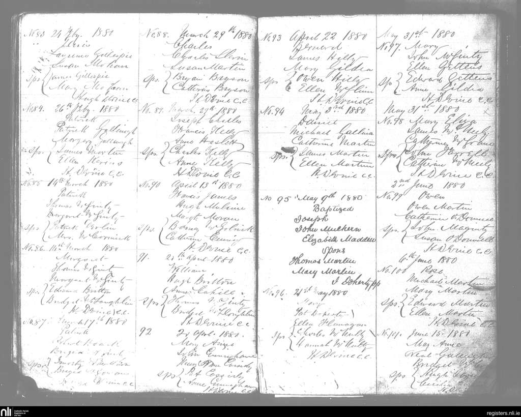 Tawnawilly; County of Donegal; Diocese of Raphoe. Baptisms, Feb. 1880 to June 1880