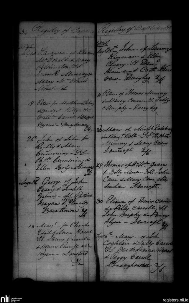 Seirkieran; County of Offaly; Diocese of Ossory. Baptisms, July 1835 to Sep. 1835