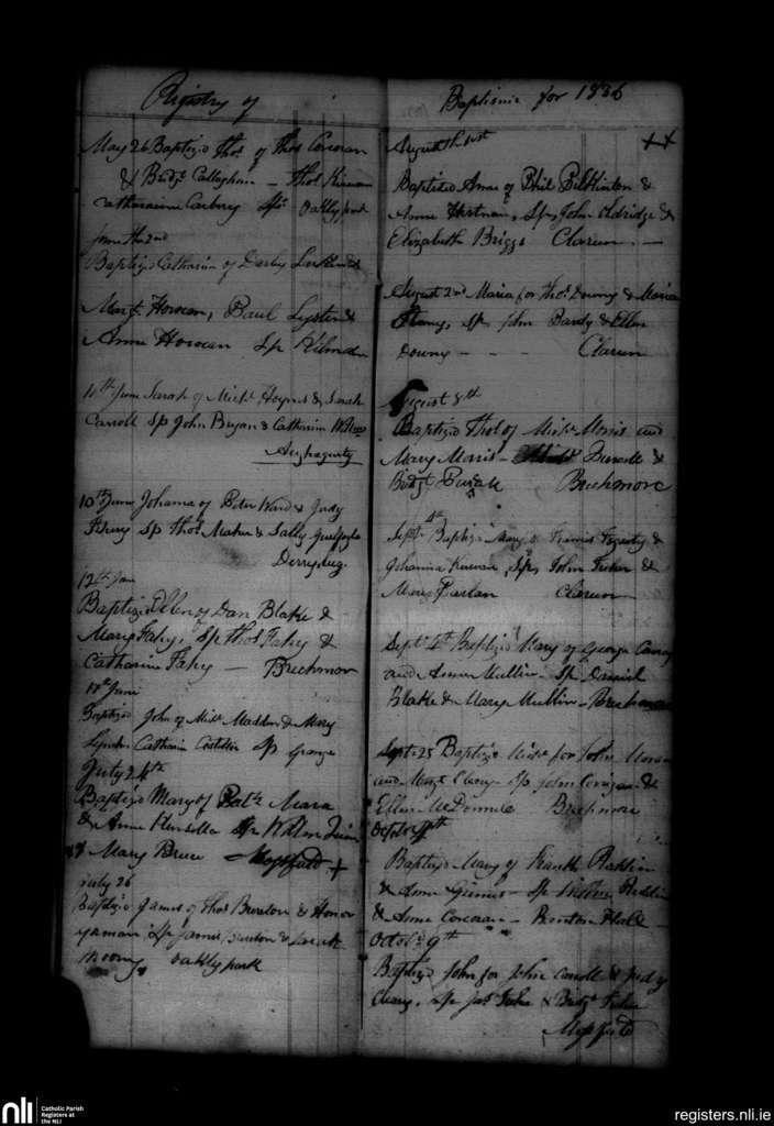 Seirkieran; County of Offaly; Diocese of Ossory. Baptisms, May 1836 to Oct. 1836