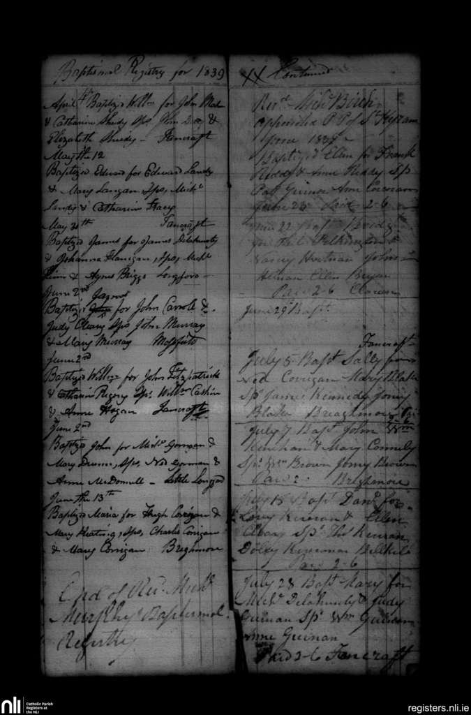 Seirkieran; County of Offaly; Diocese of Ossory. Baptisms, Apr. 1839 to July 1839
