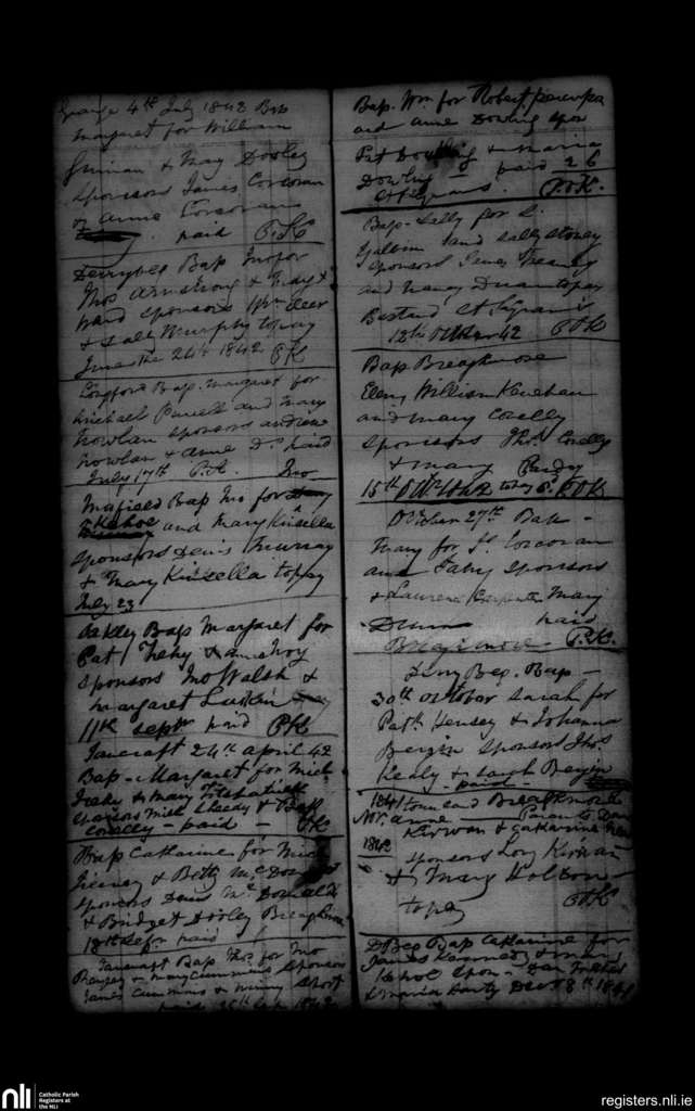 Seirkieran; County of Offaly; Diocese of Ossory. Baptisms, Nov. 1841 to Oct. 1842