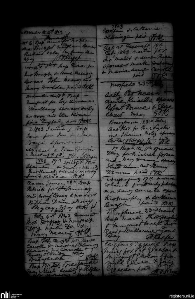 Seirkieran; County of Offaly; Diocese of Ossory. Baptisms, Nov. 1842 to Apr. 1843