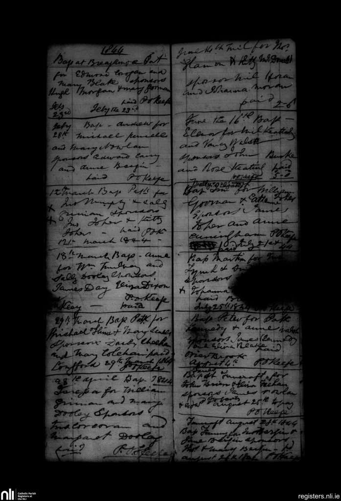 Seirkieran; County of Offaly; Diocese of Ossory. Baptisms, Feb. 1844 to Aug. 1844