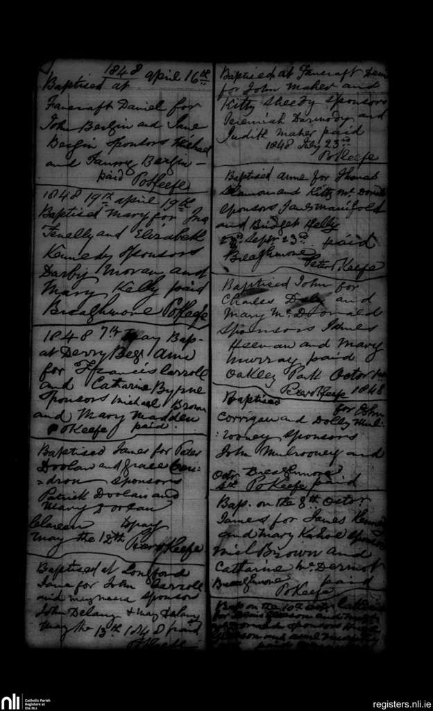 Seirkieran; County of Offaly; Diocese of Ossory. Baptisms, Apr. 1848 to Oct. 1848