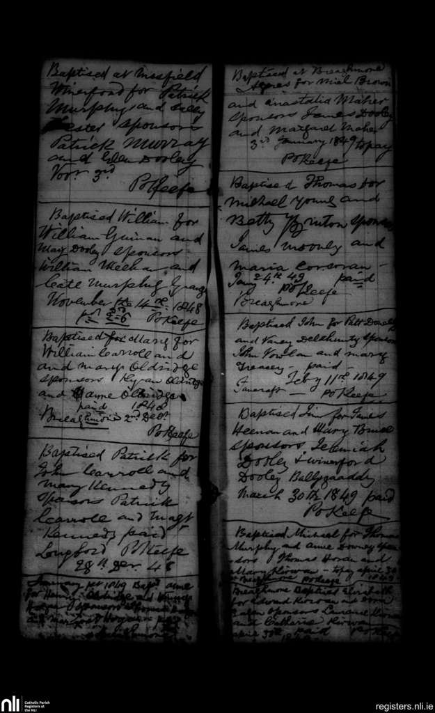 Seirkieran; County of Offaly; Diocese of Ossory. Baptisms, Nov. 1848 to Apr. 1849