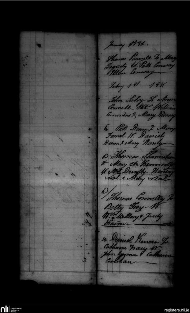 Seirkieran; County of Offaly; Diocese of Ossory. Marriages, Jan. 1831 to Feb. 1831
