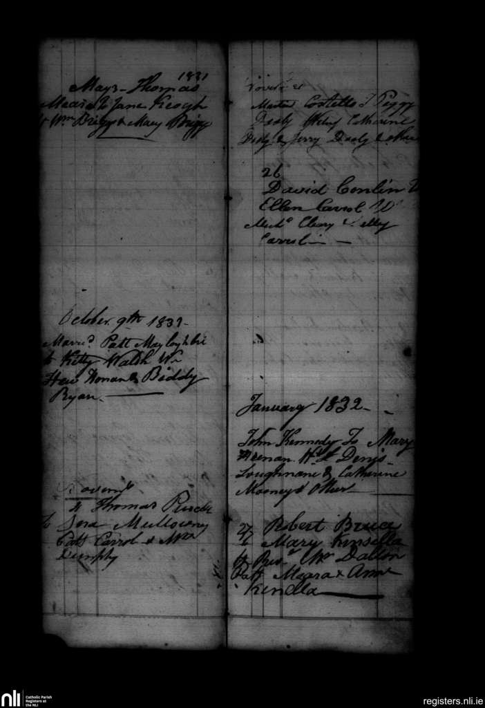 Seirkieran; County of Offaly; Diocese of Ossory. Marriages, May 1831 to Jan. 1832
