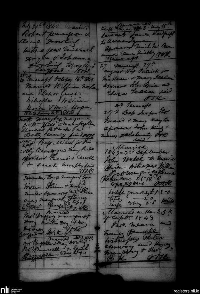 Seirkieran; County of Offaly; Diocese of Ossory. Marriages, Baptisms, July 1842 to Sep. 1843