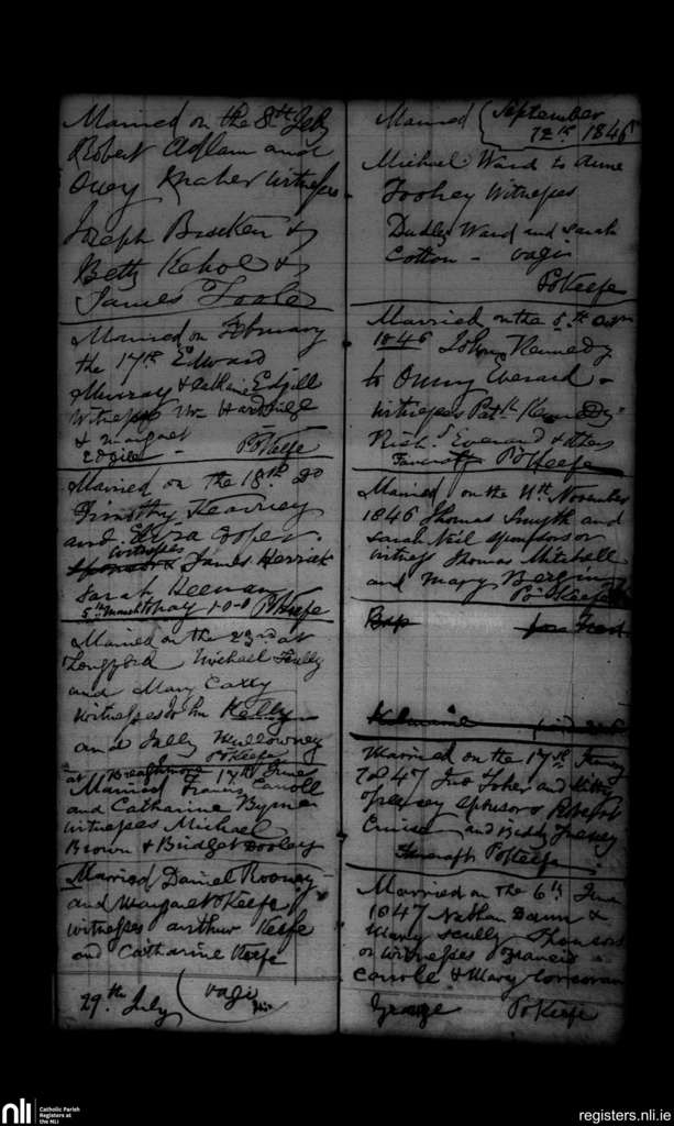 Seirkieran; County of Offaly; Diocese of Ossory. Marriages, Feb. 1846 to June 1847