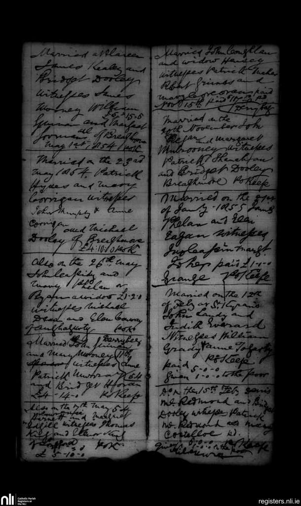 Seirkieran; County of Offaly; Diocese of Ossory. Marriages, May 1854 to Feb. 1855
