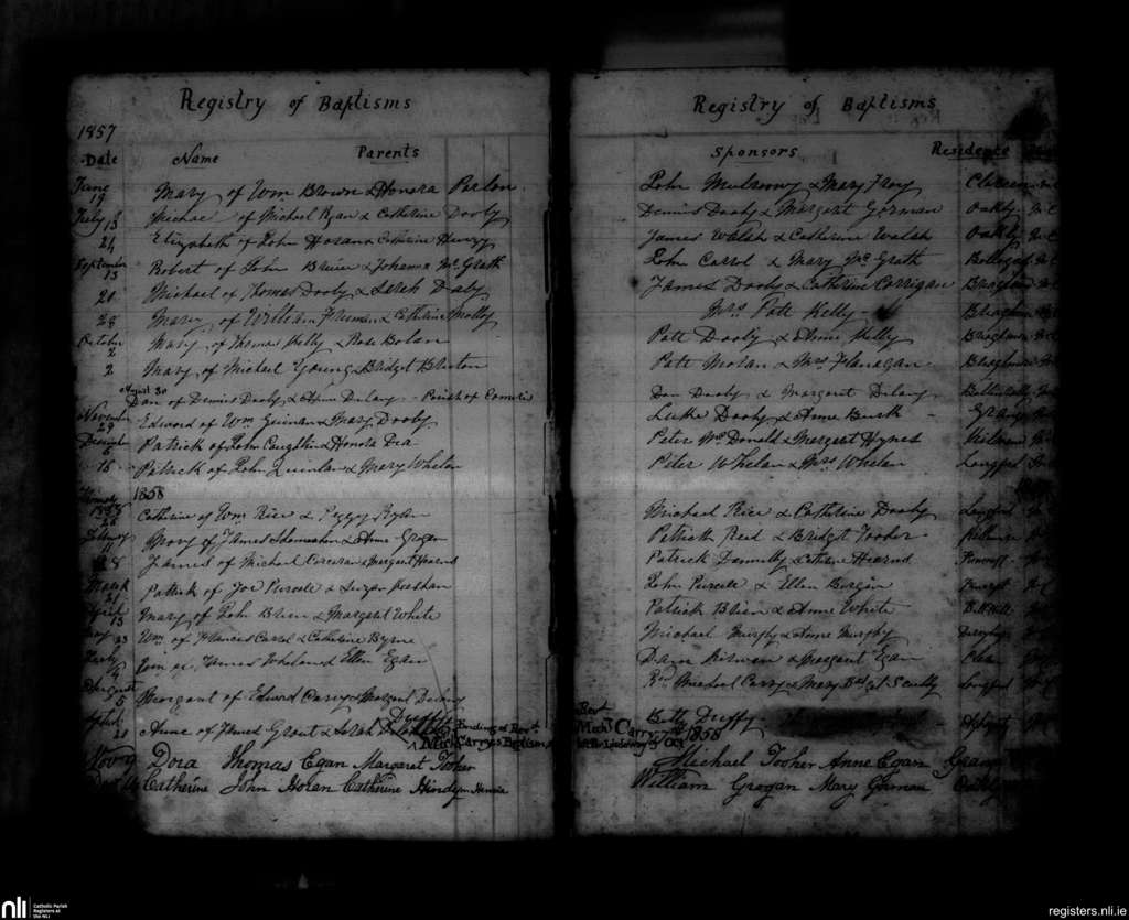Seirkieran; County of Offaly; Diocese of Ossory. Baptisms, June 1857 to Dec. 1858