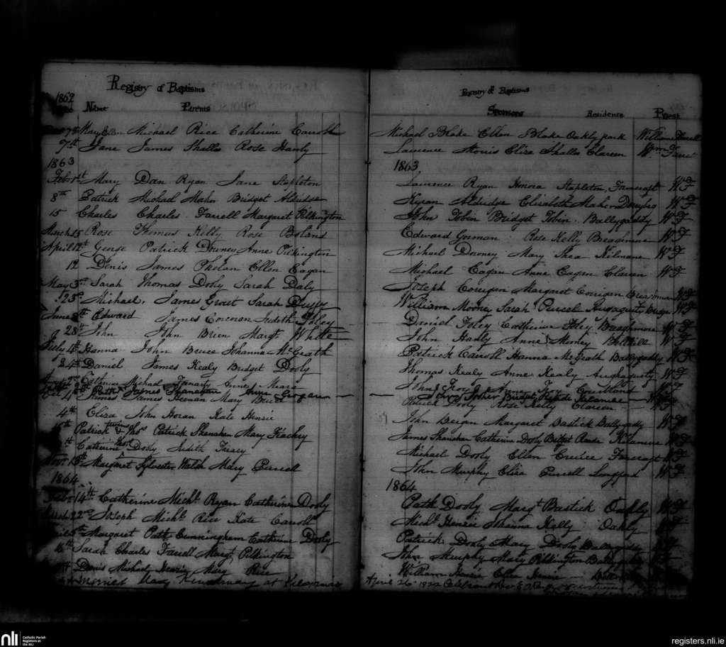 Seirkieran; County of Offaly; Diocese of Ossory. Baptisms, Oct. 1862 to Apr. 1864