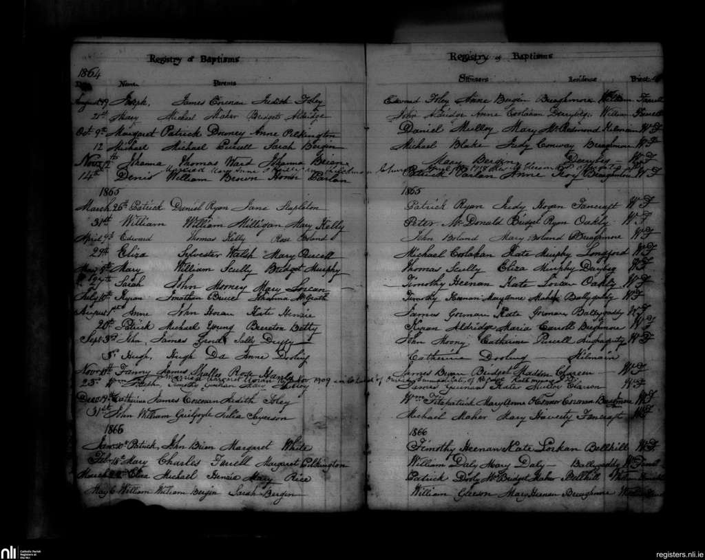 Seirkieran; County of Offaly; Diocese of Ossory. Baptisms, Aug. 1864 to May 1866