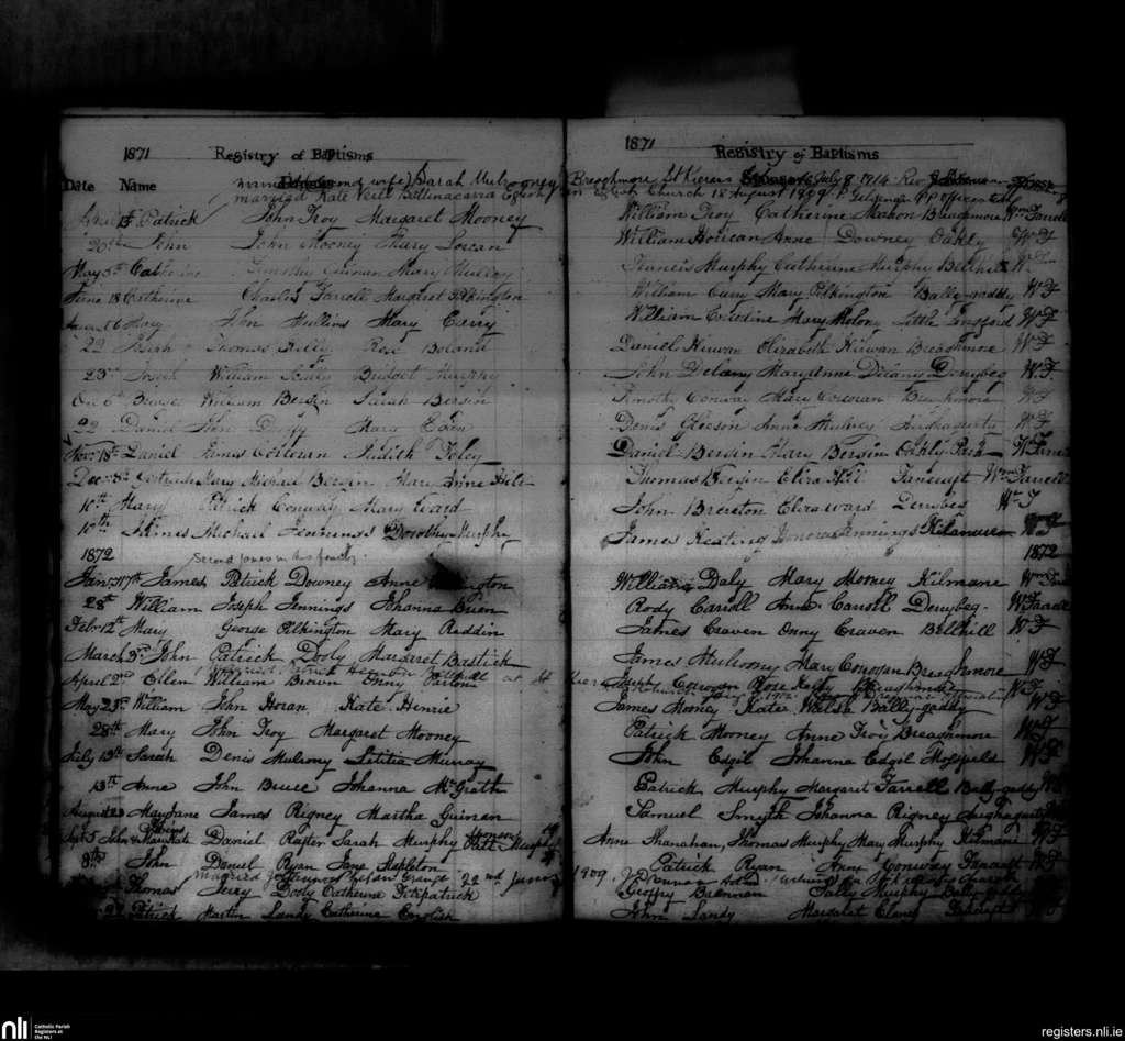 Seirkieran; County of Offaly; Diocese of Ossory. Baptisms, Apr. 1871 to Sep. 1872