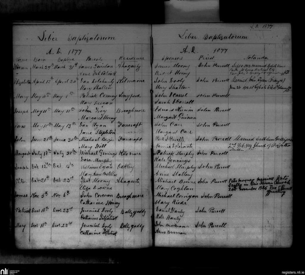 Seirkieran; County of Offaly; Diocese of Ossory. Baptisms, Mar. 1877 to Dec. 1877