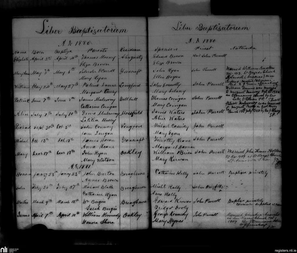 Seirkieran; County of Offaly; Diocese of Ossory. Baptisms, Apr. 1880 to Apr. 1881