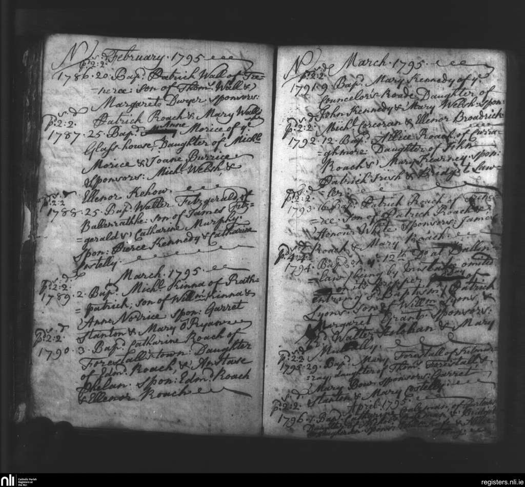 Slieverue; County of Waterford, Kilkenny; Diocese of Ossory. Baptisms, Feb. 1795 to Apr. 1795
