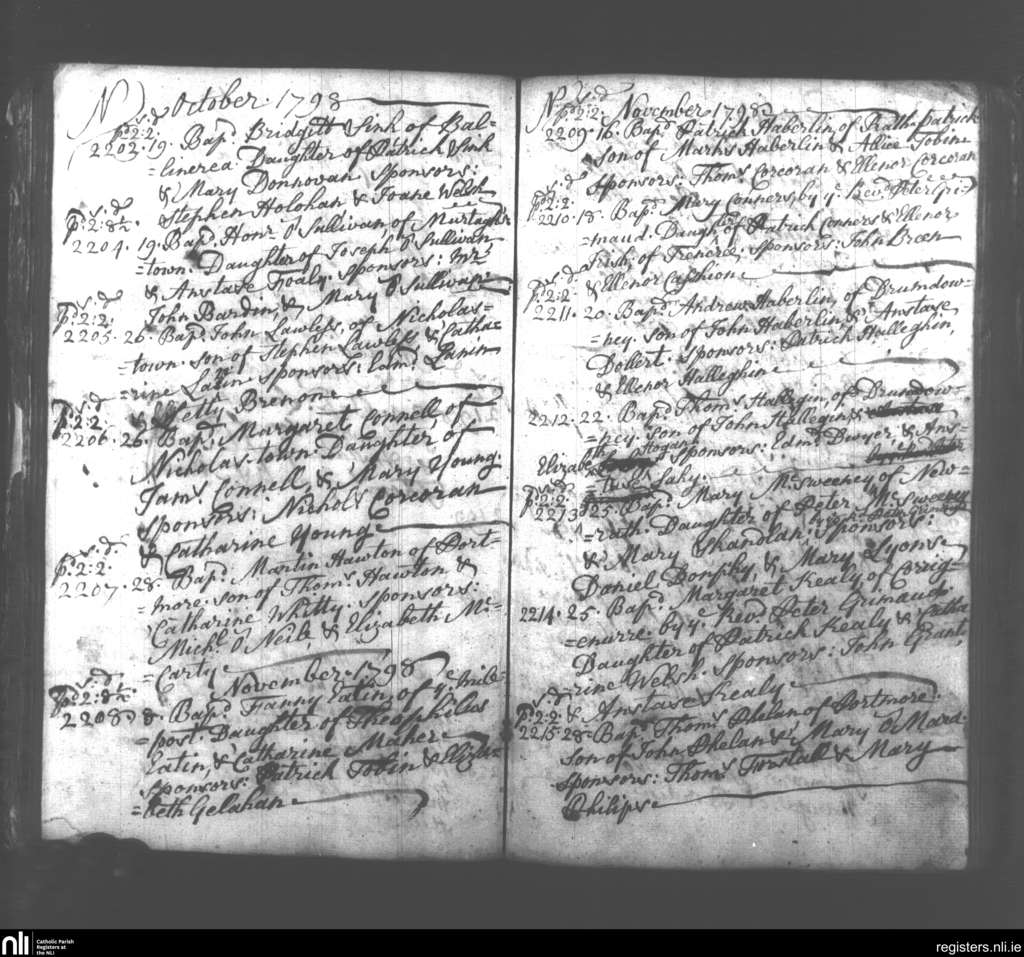 Slieverue; County of Waterford, Kilkenny; Diocese of Ossory. Baptisms, Oct. 1798 to Nov. 1798