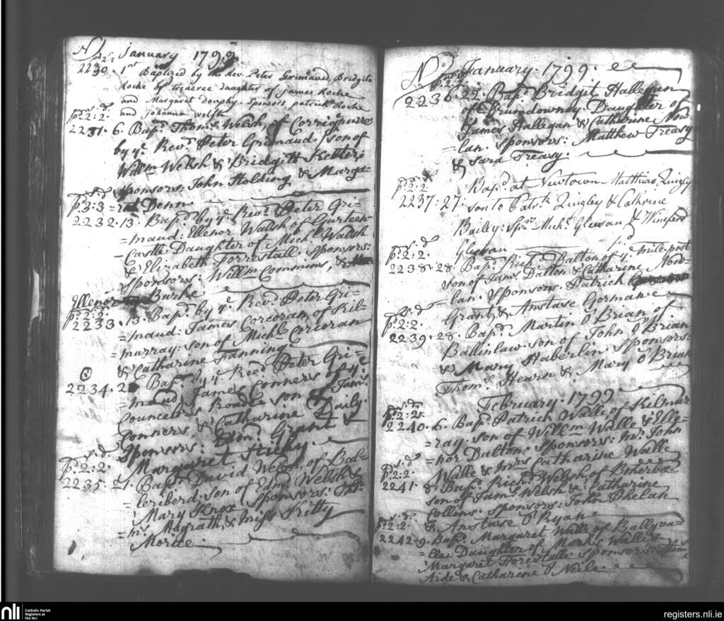 Slieverue; County of Waterford, Kilkenny; Diocese of Ossory. Baptisms, Jan. 1799 to Feb. 1799