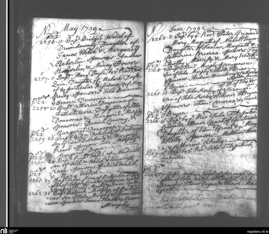 Slieverue; County of Waterford, Kilkenny; Diocese of Ossory. Baptisms, May 1799 to June 1799