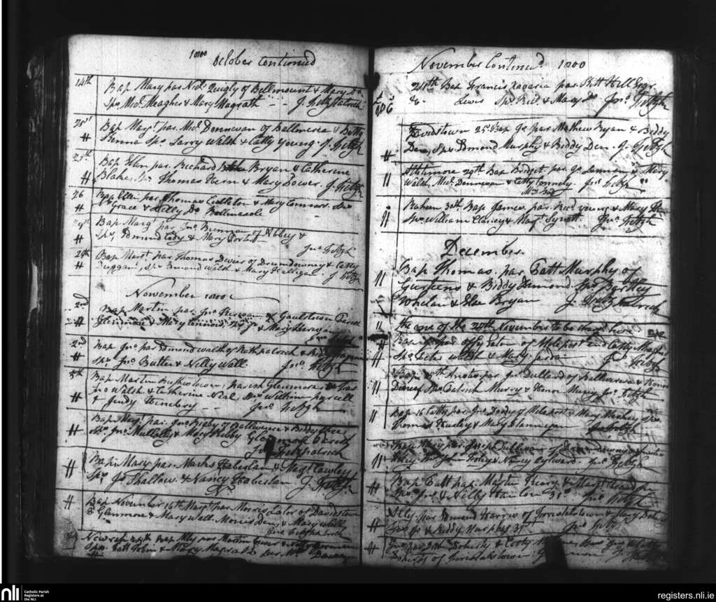 Slieverue; County of Waterford, Kilkenny; Diocese of Ossory. Baptisms, Oct. 1800 to Dec. 1800