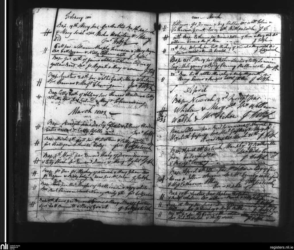Slieverue; County of Waterford, Kilkenny; Diocese of Ossory. Baptisms, Feb. 1801 to Apr. 1801