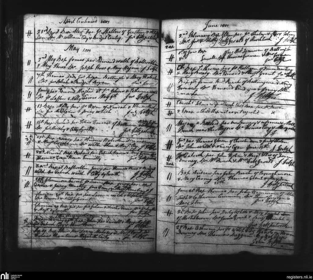 Slieverue; County of Waterford, Kilkenny; Diocese of Ossory. Baptisms, Apr. 1801 to June 1801