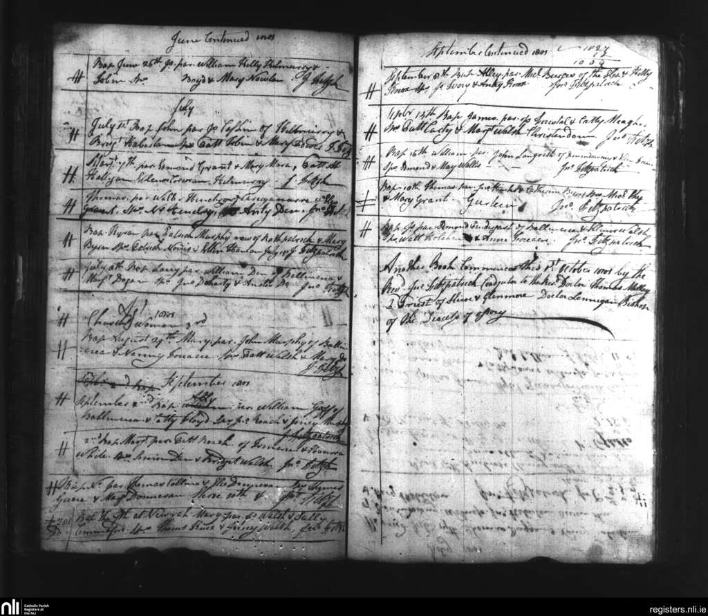 Slieverue; County of Waterford, Kilkenny; Diocese of Ossory. Baptisms, June 1801 to Sep. 1801