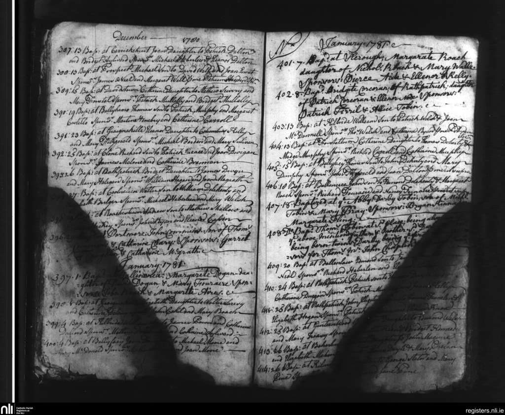 Slieverue; County of Waterford, Kilkenny; Diocese of Ossory. Baptisms, Dec. 1780 to Jan. 1781