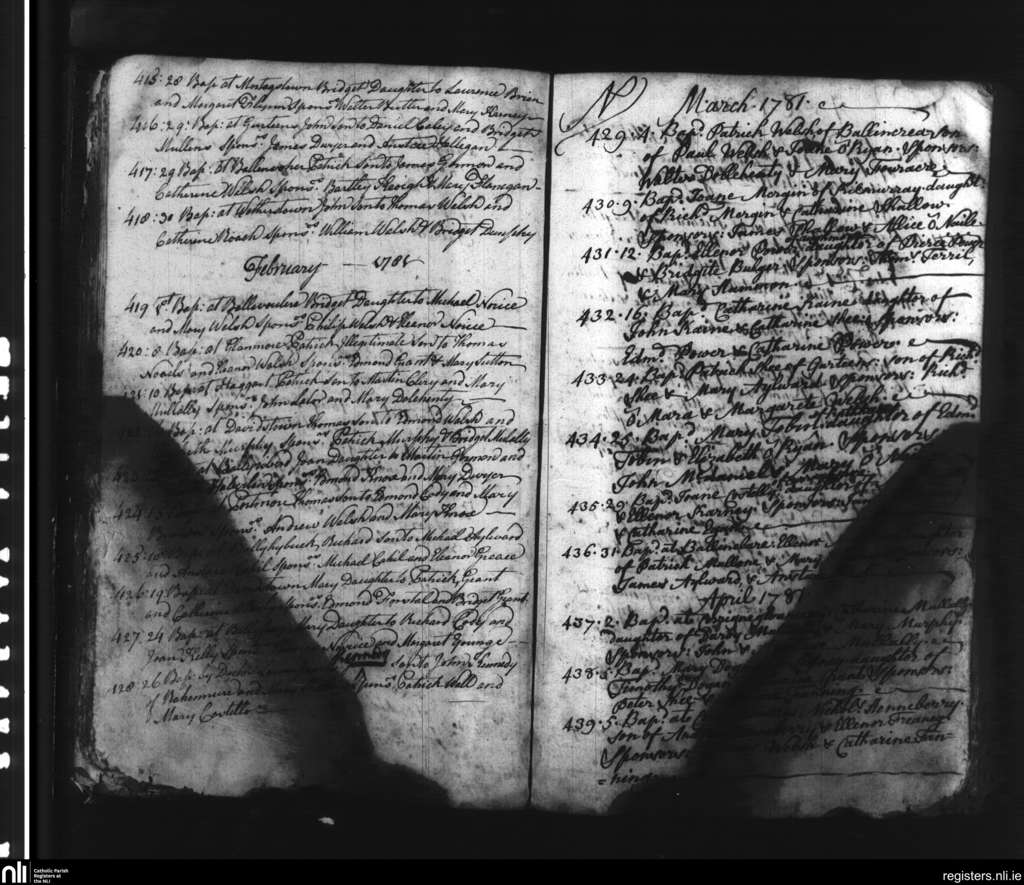Slieverue; County of Waterford, Kilkenny; Diocese of Ossory. Baptisms, Jan. 1781 to Apr. 1781