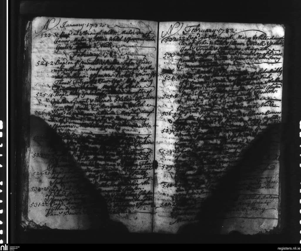 Slieverue; County of Waterford, Kilkenny; Diocese of Ossory. Baptisms, Jan. 1782 to Mar. 1782