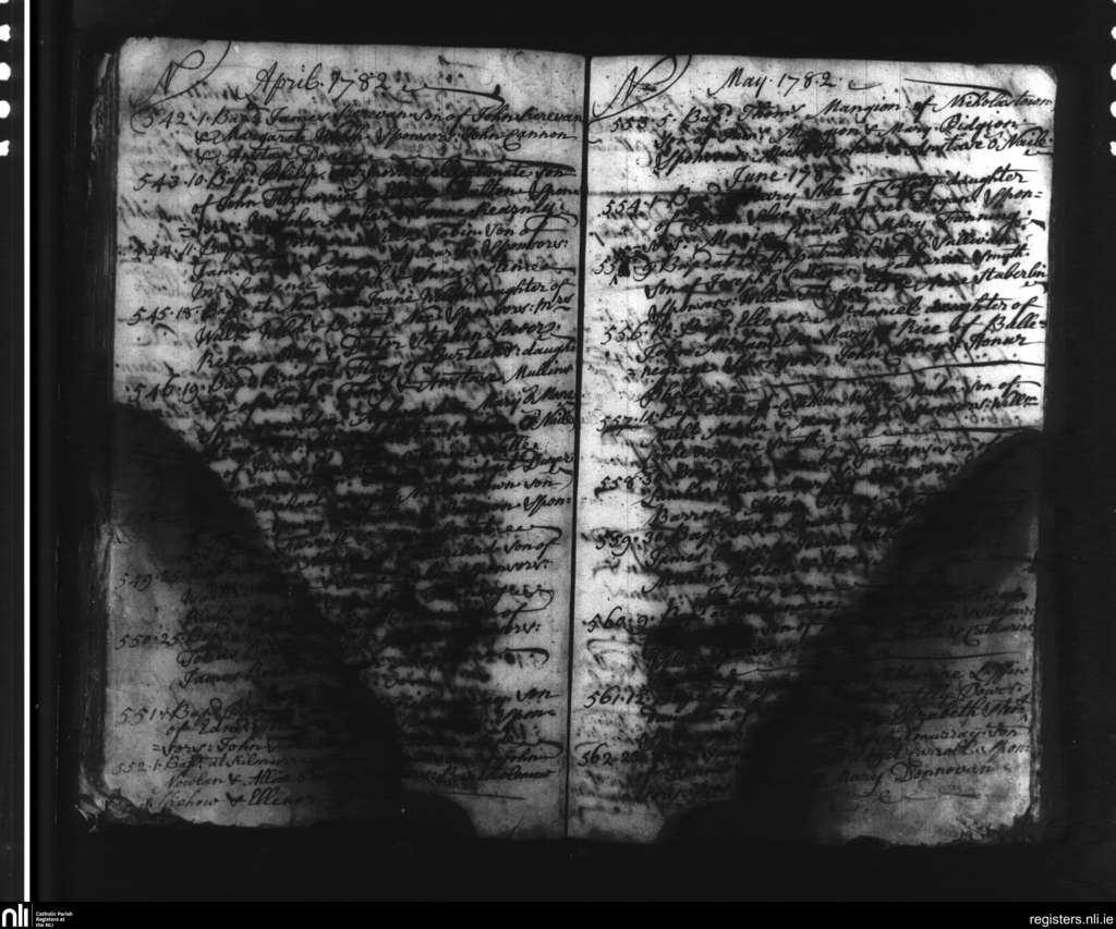 Slieverue; County of Waterford, Kilkenny; Diocese of Ossory. Baptisms, Apr. 1782 to July 1782