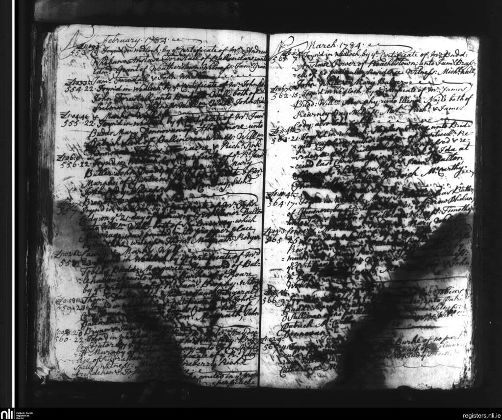 Slieverue; County of Waterford, Kilkenny; Diocese of Ossory. Marriages, Deaths, Feb. 1784 to May 1784