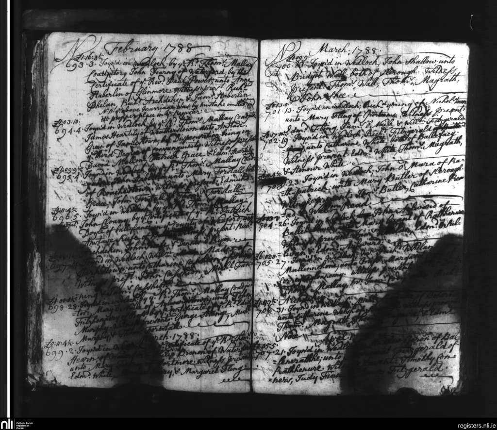 Slieverue; County of Waterford, Kilkenny; Diocese of Ossory. Marriages, Feb. 1788 to Apr. 1788