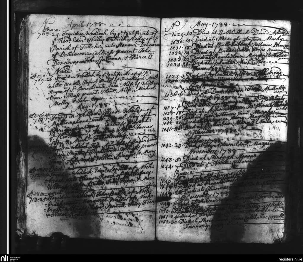 Slieverue; County of Waterford, Kilkenny; Diocese of Ossory. Marriages, Deaths, Apr. 1788 to Jan. 1789