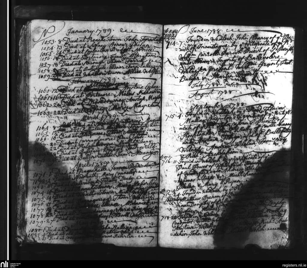 Slieverue; County of Waterford, Kilkenny; Diocese of Ossory. Marriages, Deaths, June 1788 to May 1789