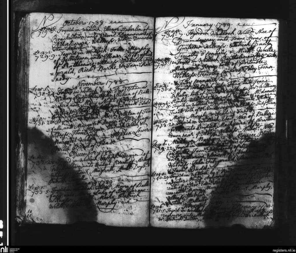 Slieverue; County of Waterford, Kilkenny; Diocese of Ossory. Marriages, Deaths, Oct. 1788 to Feb. 1789
