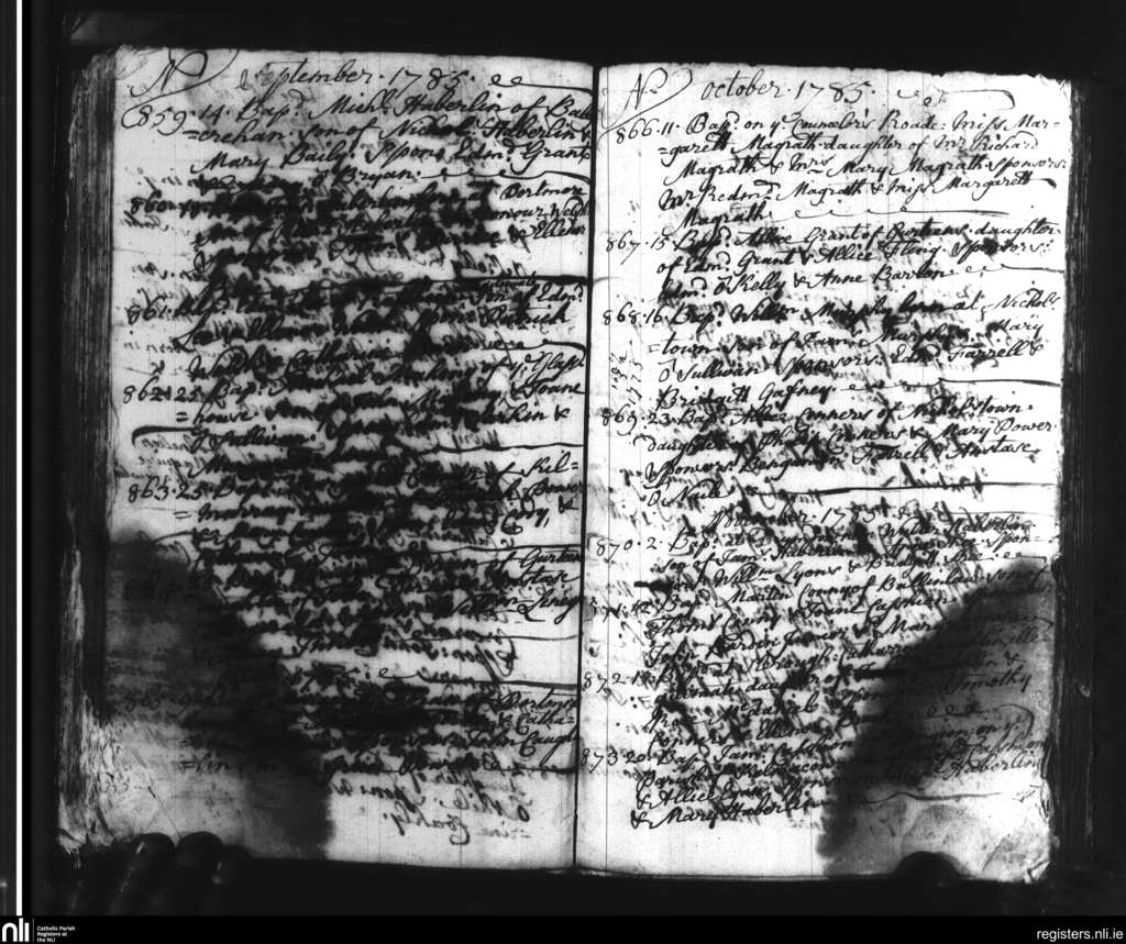 Slieverue; County of Waterford, Kilkenny; Diocese of Ossory. Baptisms, Sep. 1785 to Nov. 1785