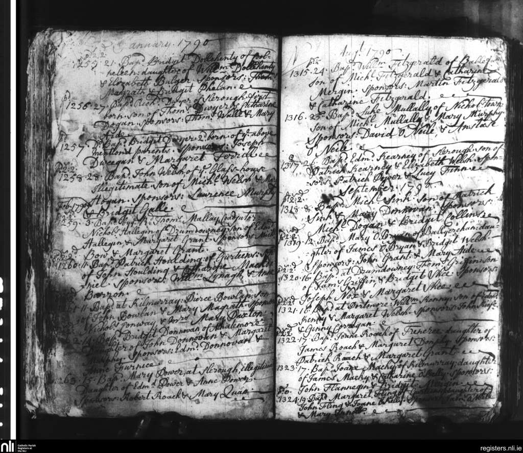 Slieverue; County of Waterford, Kilkenny; Diocese of Ossory. Baptisms, Jan. 1790 to Sep. 1790